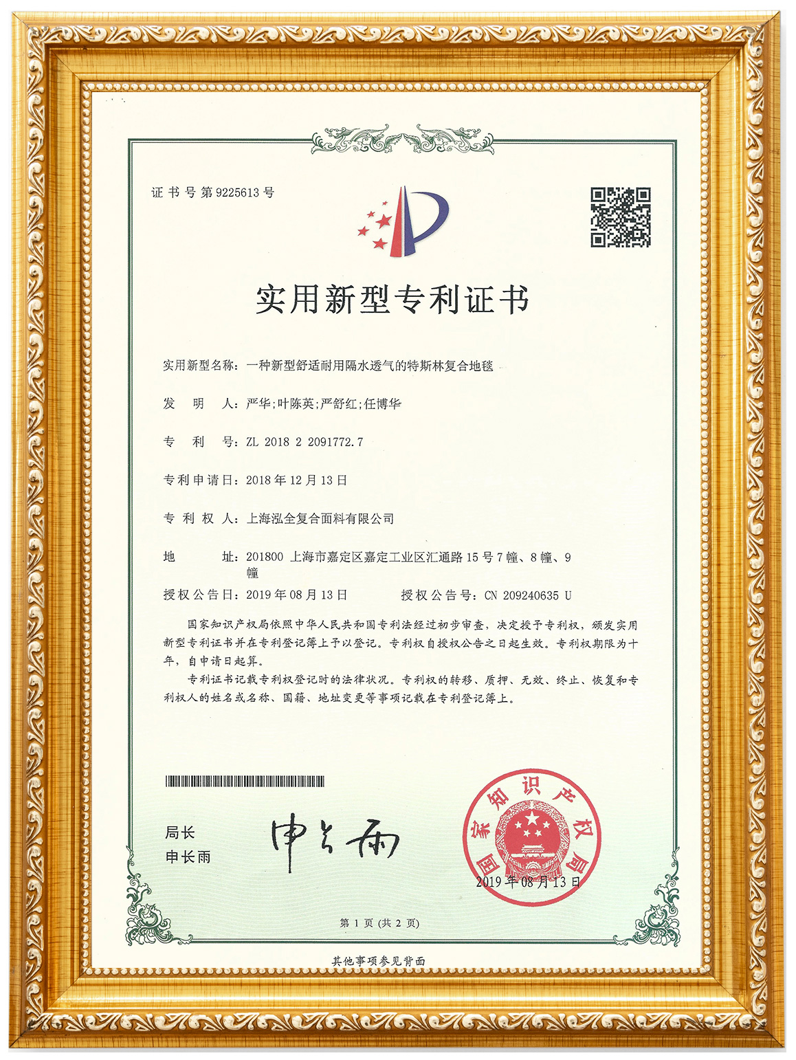 上海泓全復合面料有限公司始創于2009年,是集研發(fā)、設計、生產、銷售、服務為一體的織布復合加工生產型企業。專業從事家紡面料、服裝面料、箱包面料、地毯面料和醫療護理、充氣產品、家居用品、廣告布等各種面料的復合。公司目前生產的成品涵蓋家紡系列、家居系列、老年人和嬰幼兒護理系列、醫療護理系列等。公司坐落于上海市嘉定工業區,西鄰昆山,北鄰太倉,交通便利,廠房面積達10000多平方米。